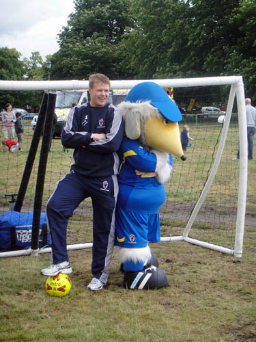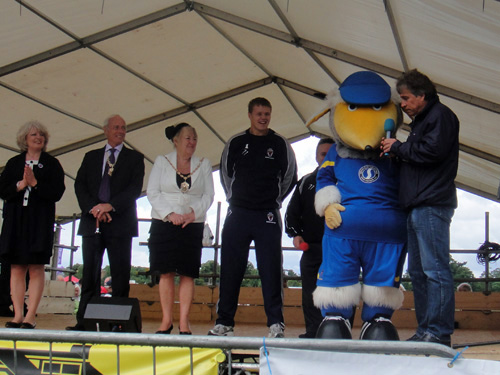 To officially declare the fair open, Haydon took a death-defying leap off the front of the stage - landing safely on the ground where he greeted local children and waved to the crowd. Afterwards, Haydon walked around the fair to meet his fans, and showed off his football skills at the AFC Wimbledon stall.