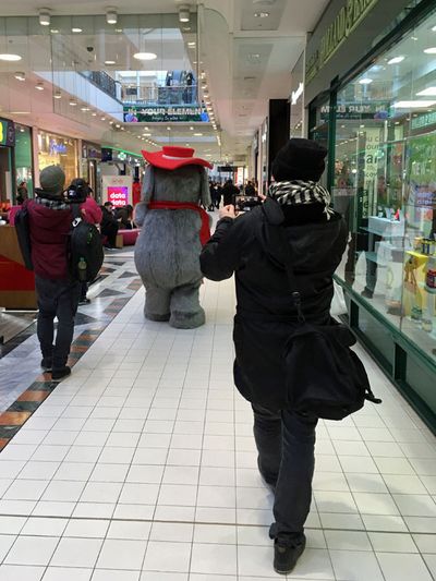He took an afternoon stroll through Centre Court shopping centre, pausing to greet some of the passers-by, before walking up to the railway station and posing for photos in the forecourt.