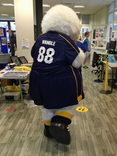 Haydon is a regular and popular guest at local community and charity events. For this year’s Heritage Discovery Day at Morden Library on 21 August, the club got permission from the licence holders for Wandle to join him, as part of a celebration of Wimbledon’s footballing history and the club’s return to its spiritual home at Plough Lane.