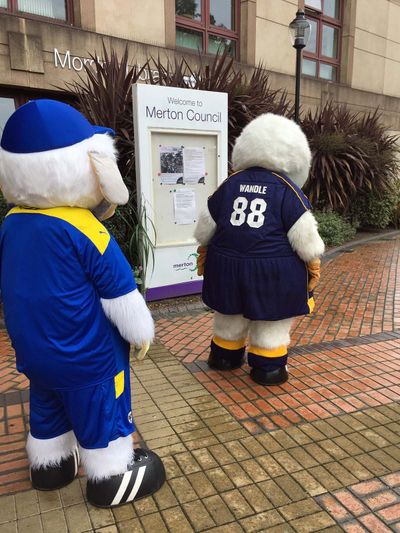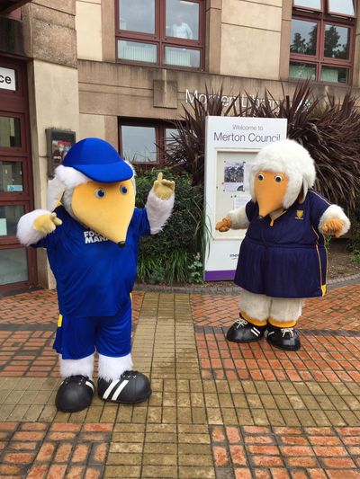 The past and present Wimbledon football mascots, Wandle and Haydon, have appeared together for the first time, at Merton Heritage Discovery Day.