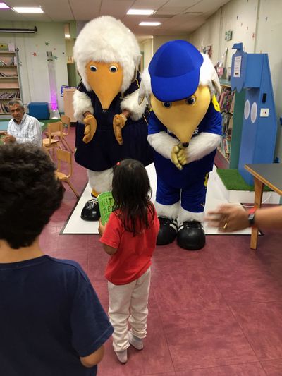 Wandle and Haydon spent the afternoon pottering around the library and the forecourt, waving at children and posing for photos with fans young and old. They also judged the children’s colouring competition, choosing six winners who were awarded books as prizes.