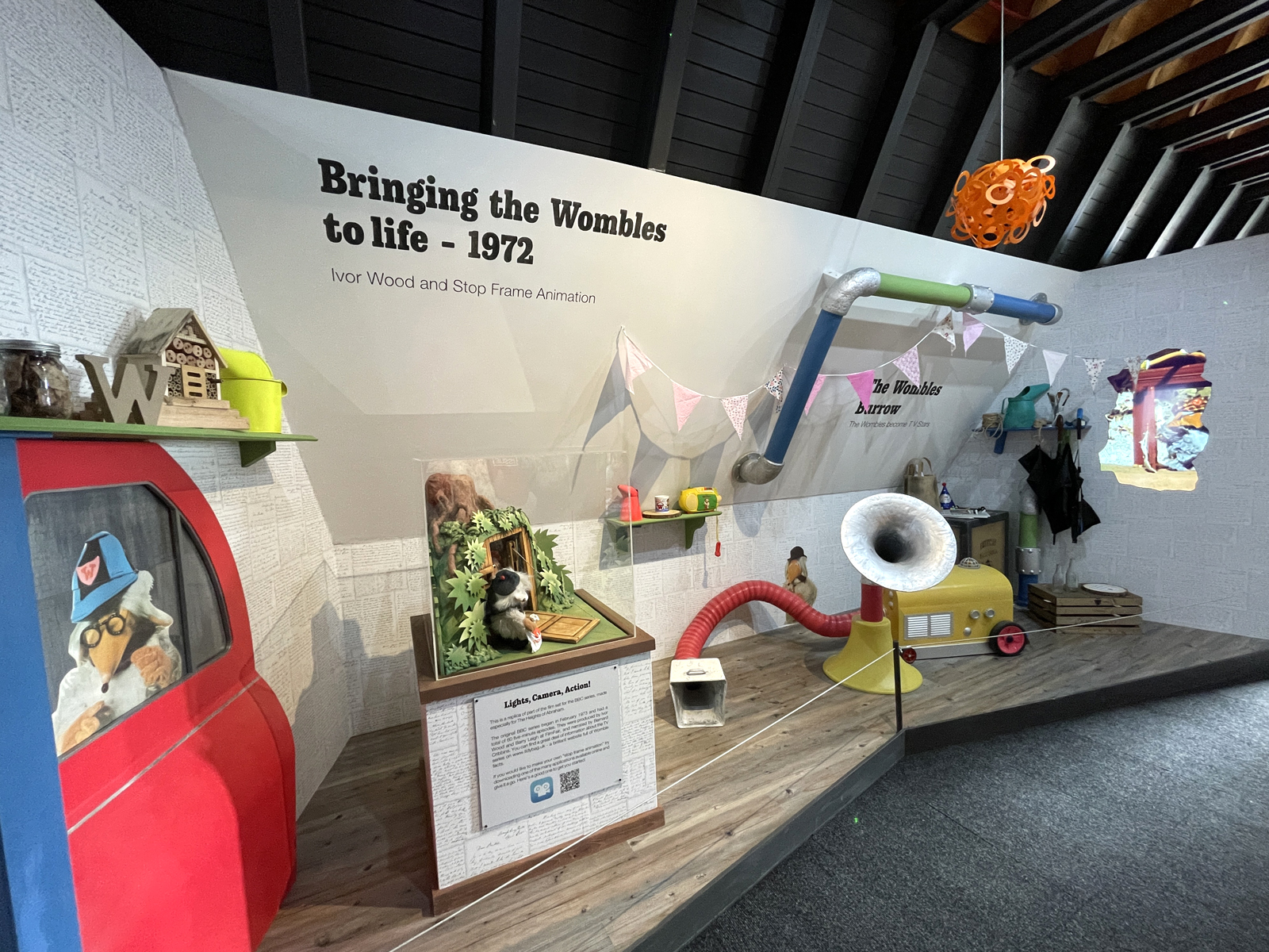 - Bringing the Wombles to life - 1972: a replica of the burrow entrance drawbridge door film set, made specially for this exhibition, with toys standing in for the stop-motion puppets
