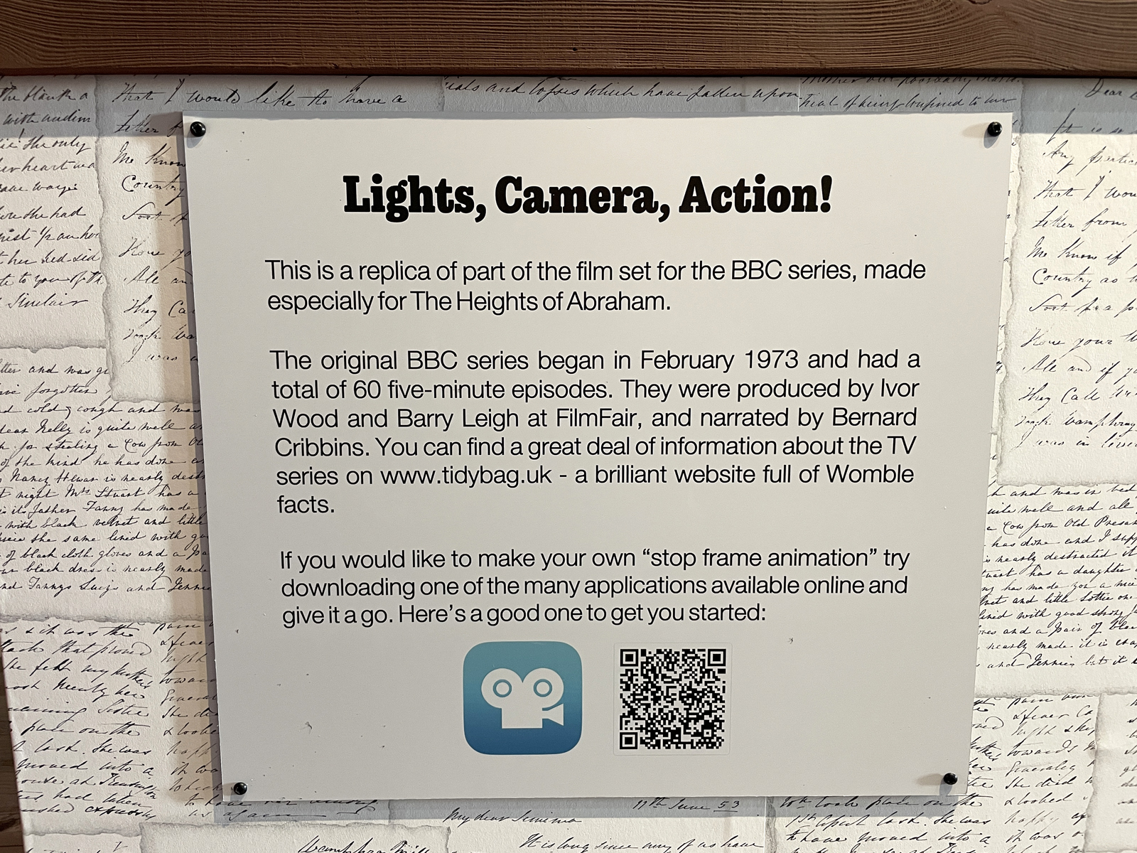 So I couldn’t miss the chance to see a brand new retrospective, ‘Womble Mania!’, opening in July 2025 at the Heights of Abraham, Derbyshire’s oldest visitor attraction. A few minutes’ walk from Matlock Bath train station, you take a cable car flight to the summit of Masson Hill, where the exhibition is in one of the main buildings.