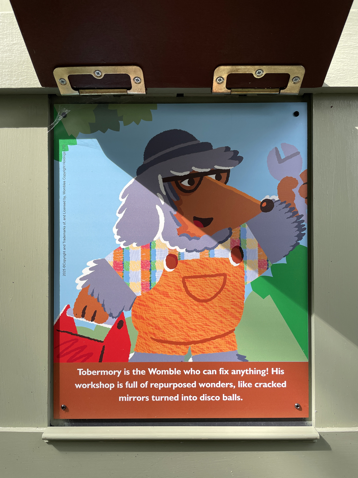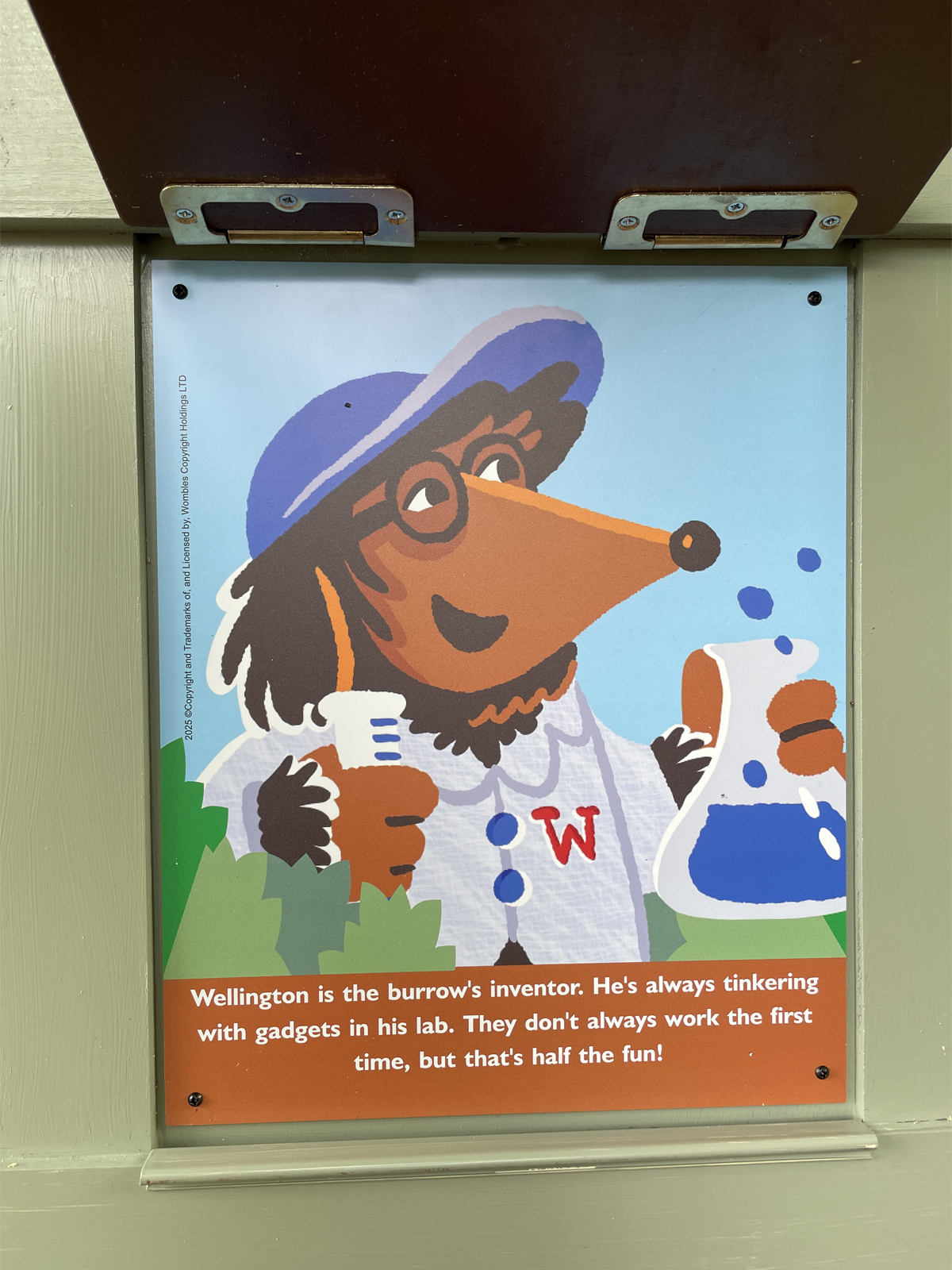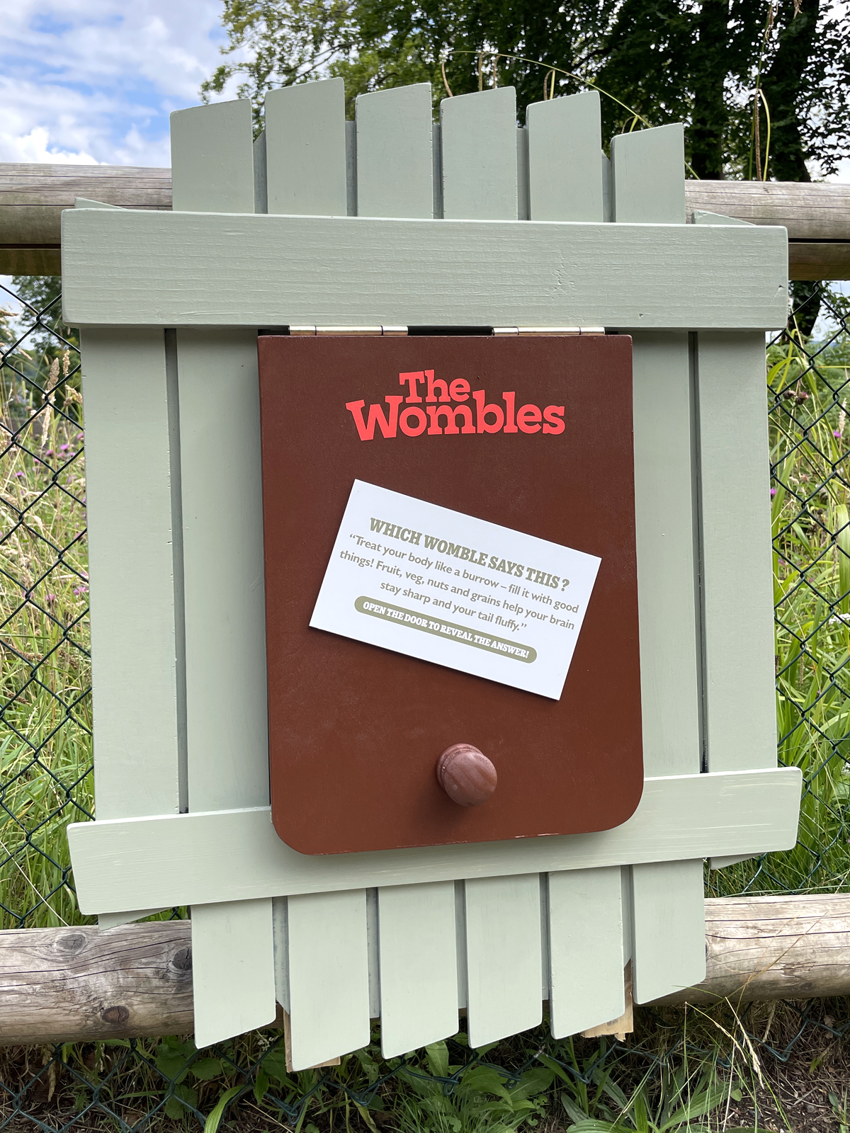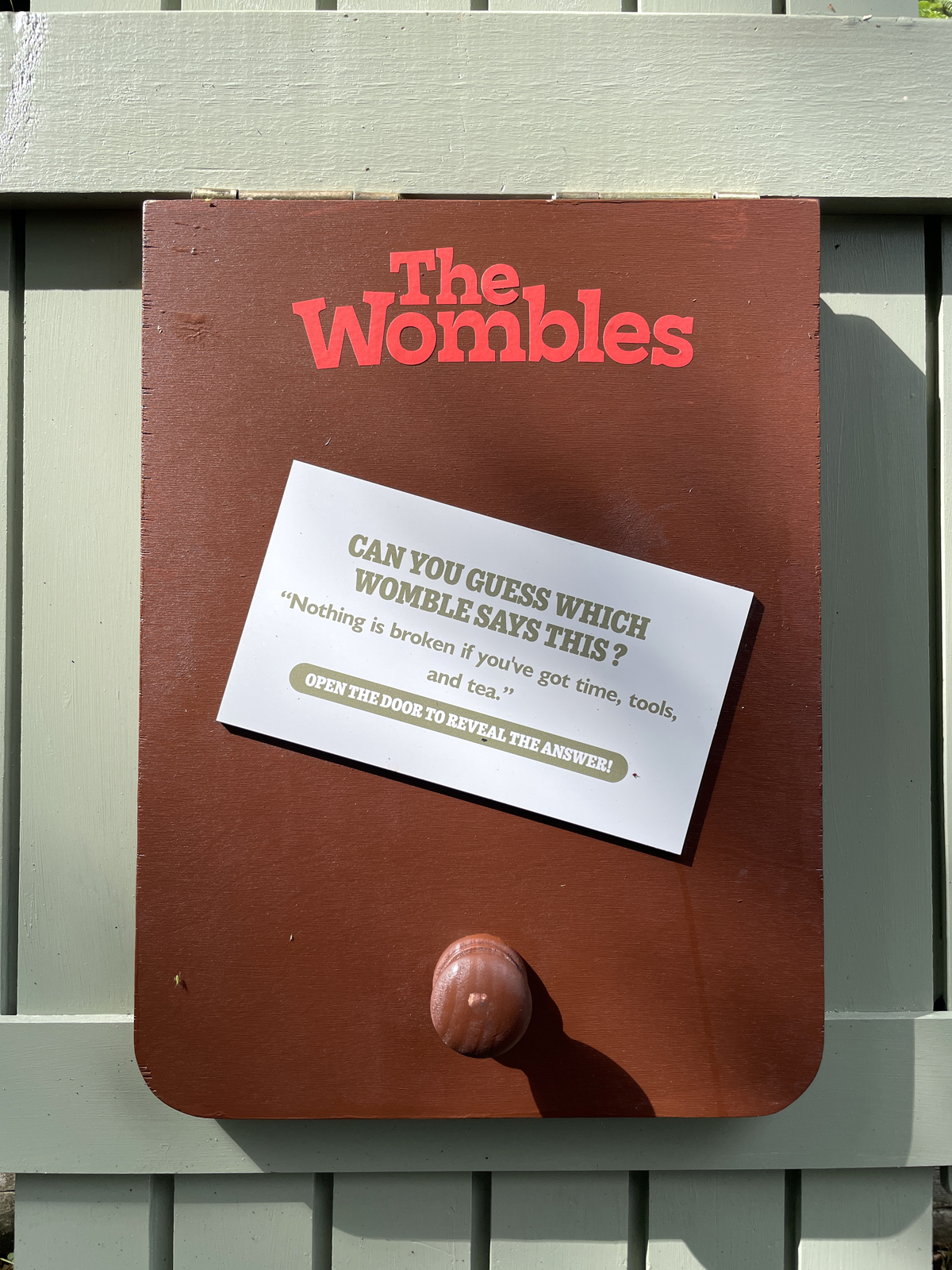 The Children’s Trail consists of six Womble doors to spot around the central area of the estate. A few of them were harder to find, so I had to refer back to the map that’s displayed at the exhibition exit. On the front of each wooden door is a clue to which Womble is inside, and when you lift the flap, it reveals the answer with some more details about their personality.