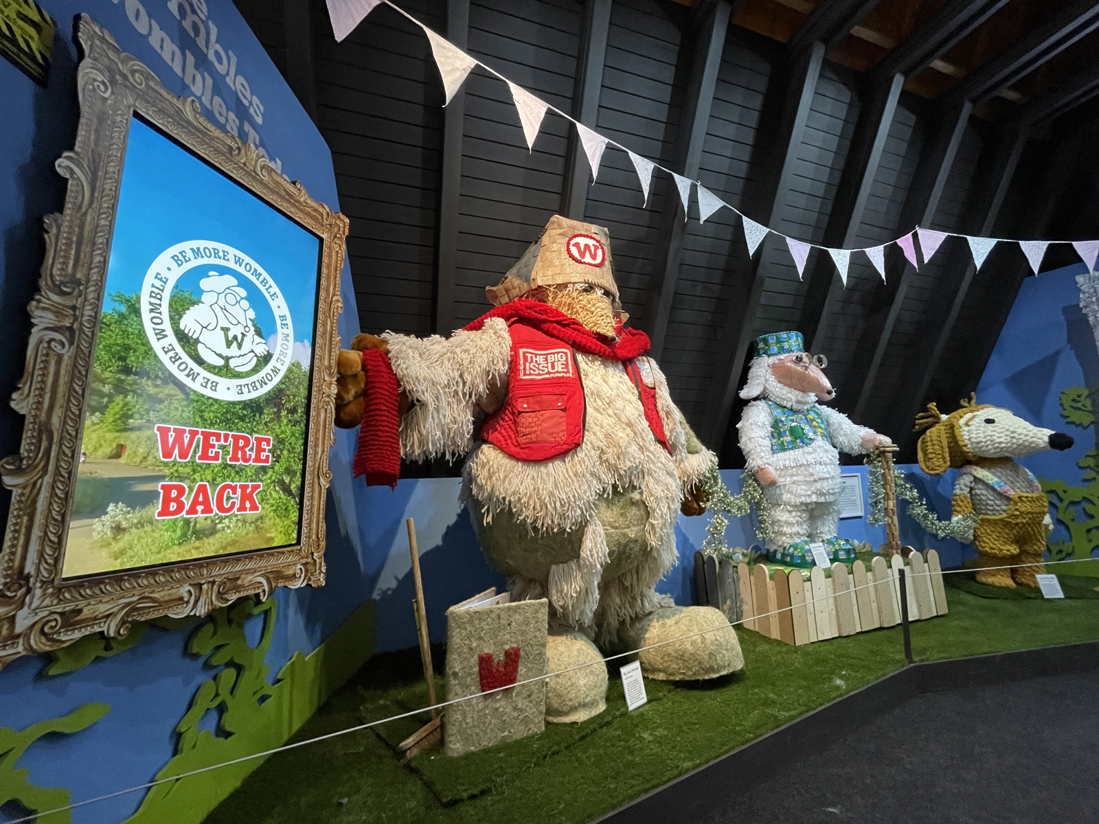 - Wombles today: videos of the latest CGI characters and The Wombles’ Community Charity, and three exclusive sculptures made of natural and recycled materials - ‘Big Issue Womble’ by Biz Sutton, ‘Rubbish Womble’ by Sarah Turner, and ‘Crochet Womble’ by Céline Buccomino