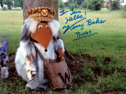 I’m relieved – no, better than that, I’m pleased: pleased to see Mr Baker take pride in a little-celebrated role. Naturally, he’s happy to sign the picture, which I ask him to dedicate to Tara. “She’s a big fan of the Wombles,” I explain. Kenny carefully writes his dedication and signs the picture, adding an explanatory ‘Bungo’. He poses with me for a quick snap and I thank him for his time. With my mission accomplished, I head for a quiet corner to admire the results (pictured).